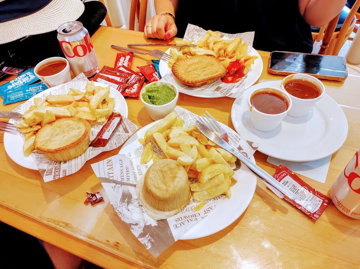 The restaurant is known for its classic take on the beloved fish and chips, but it offers so much more than that. One of the standout dishes here is the Steak Pie, a savory treat that's sure to warm you up on a chilly evening. This hearty pie is filled with tender beef, a rich gravy, and a flaky, golden crust-truly a comforting choice for any diner. If you're in the mood for something a bit more traditional, the Pies and Chips with Gravy is a great option. The combination of crisp, golden fries with the rich, flavorful gravy and a perfectly cooked pie makes it a true classic.