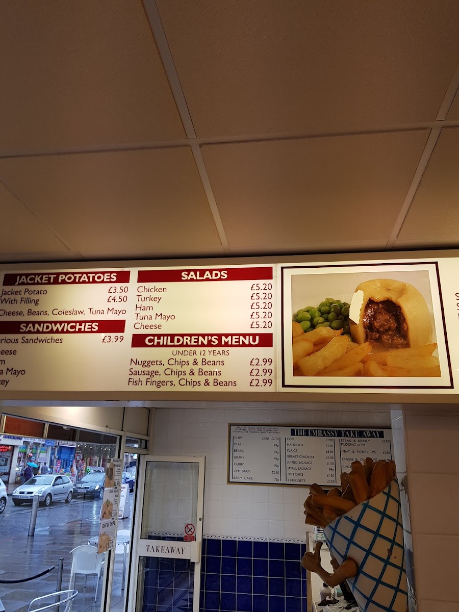 From a reviewer’s perspective, Silcock's Embassy offers a straightforward yet comforting menu that caters to a variety of tastes. The salad selection features classic options like Chicken, Turkey, Ham, Tuna Mayo, and Cheese, each providing a simple but satisfying choice for lighter appetites. The Children's Menu is thoughtfully curated with familiar favorites, including Nuggets, Chips & Beans, Sausage, Chips & Beans, and Fish Fingers, Chips & Beans, ensuring that younger diners find something appealing. For those seeking a casual, takeaway-style option, The Embassy Take Away section presents staples such as Chips, Peas, Beans, Gravy, and Curry, perfect for a quick, no-fuss meal. Overall, the menu emphasizes traditional, hearty dishes at approachable prices, making Silcock's Embassy a reliable spot for families and those in search of classic comfort food in Southport.